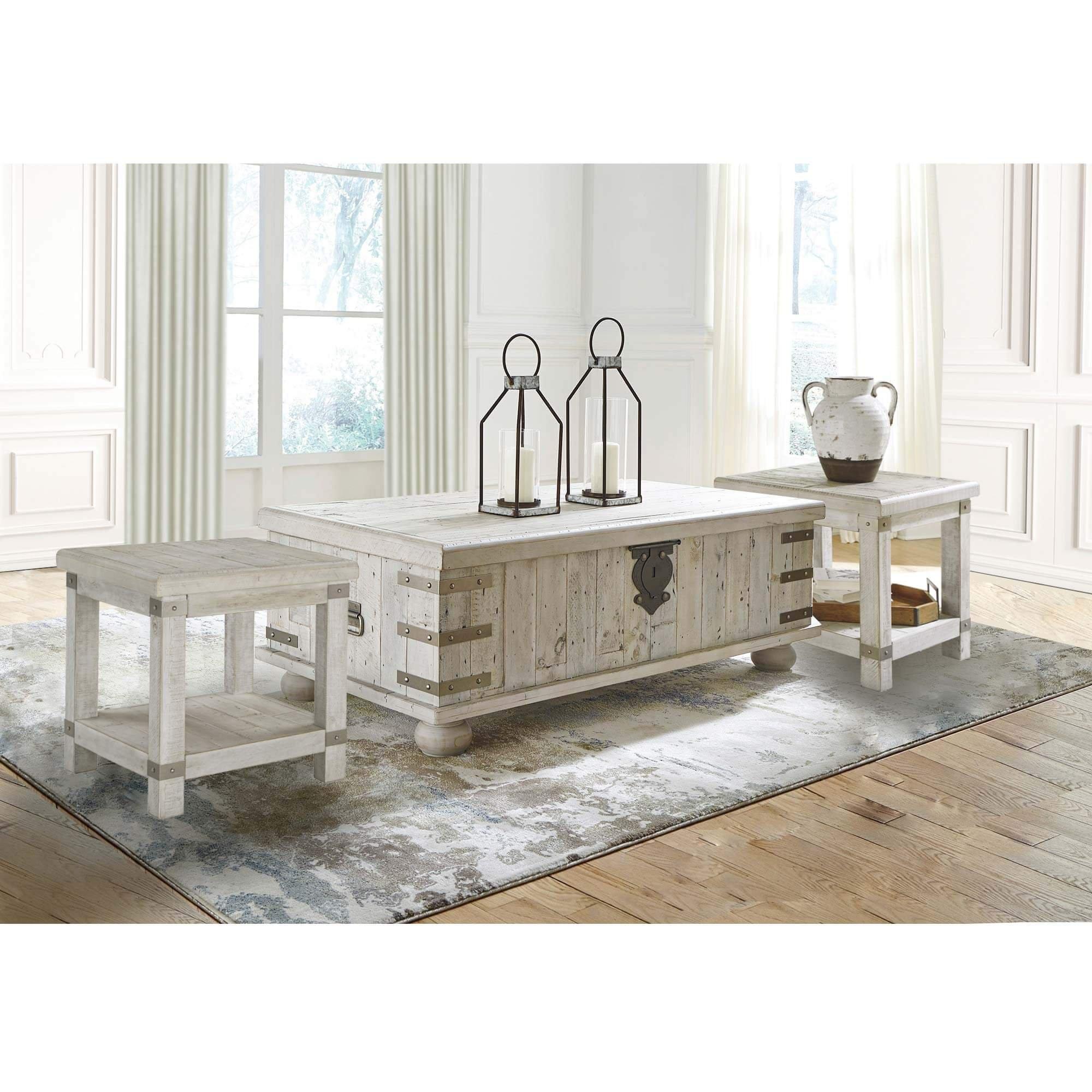 26 x 22 x 25 inches. Add country-inspired charm to your home with this quaint end table. 1 Coffee Table with Lift Top1 End Table Signature Design by Ashley White Wash Gray Coffee Table with Lift Top 52W x 28D x 18H 92lbs.