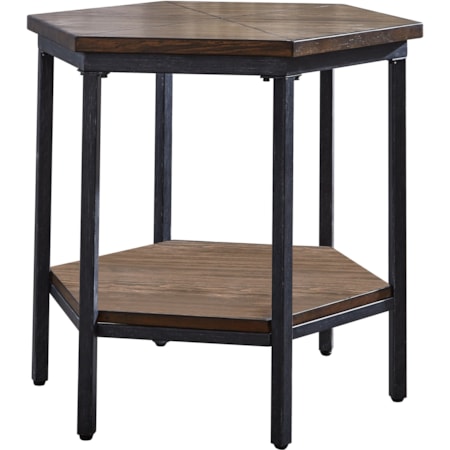 Signature Design by Ashley Danell Ridge Rectangular End Table Average Rating. Sporting dark iron-tone industrial hardware and a distinctive display shelf its. Its clean straightforward profile is enriched with solid pine wood treated to a complex finish melding grey and brown hues.