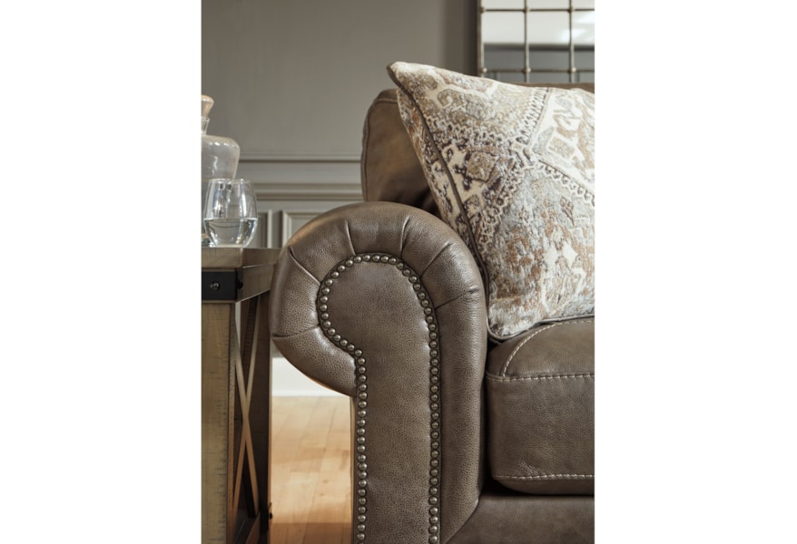 Sporting a pleasing profile with classic roll arms jumbo stitching and nailhead trim this generously scaled chair will win you over with real leather throughout the seating area where it matters most. Chair and a Half 54W x 40D x 39H - 109lbs. Create a traditional and sophisticated seating area around the Signature Design by Ashley Roleson Oversized Club Chair.