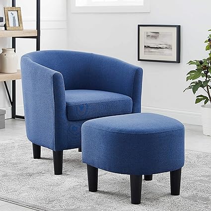 Dazone Modern Accent Chair Upholstered Arm Chair Linen Fabric Single Sofa Barrel Chair With Ottoman Foot Rest Blue Amazon In Home Kitchen