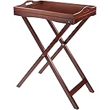 Medium brown finish of the wood embraces the beauty of natural elements. Made of wood and metal. Great for holding snacks and drinks while watching TV or a place to put the remote phone tablet magazines etc in the living room bedroom or bathroom The wooden top removes creating an ideal serving tray for entertaining while the metal stand is fully collapsible and easy to store At 27 inches high this table puts everything right.