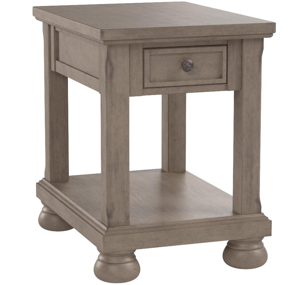 Forever classic design details-inlaid panels silvertone patina hardware and bun feet-are so easy to love. Lettner End Table T733-3 Gray Signature Design by Ashley. Two-tone aesthetic is deliciously different.