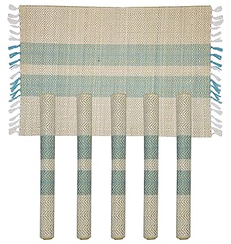 Kopai-Paar Handmade Madur Kathi Natural Fibre Place Mat and Table Runner Set - Fun Blue 7 pc Kopai-Paar Handmade Madur Kathi Natural Fibre Place Mat and Table Runner Set - Elegant Black 7 pc HOKIPO PVC Table Mats for Dining Table with Runner Copper Brown 4 Pieces Placemats 1 Table Runner AR2309. Handmade Madur Kathi Natural Fibre Black Zig Zag Table Runner.