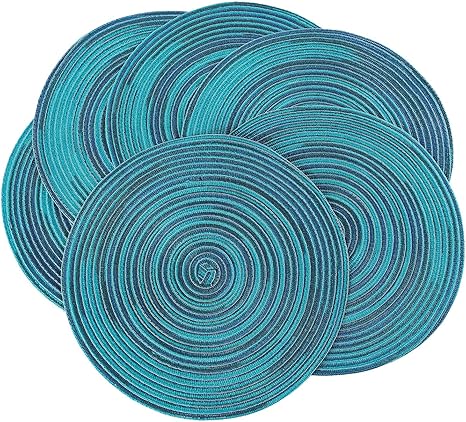 Amazon Com Dii Round Braided Woven Indoor Outdoor Placemat Set Of 6 Aqua Place Mats Amazoncart D Woven Placemats Outdoor Table Settings Blue Placemats