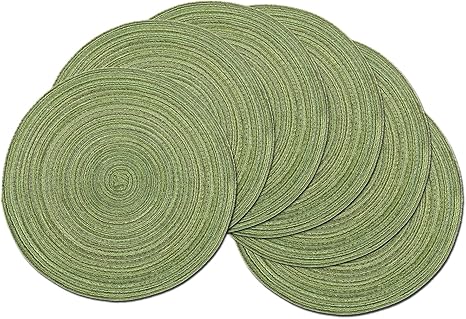 Amazon Com Shacos Round Placemats Set Of 6 For Dining Tables 15 Inch Cotton Braided Placemats Washable Reversible For Kitchen Holiday Party Pea Green 6 Home Kitchen