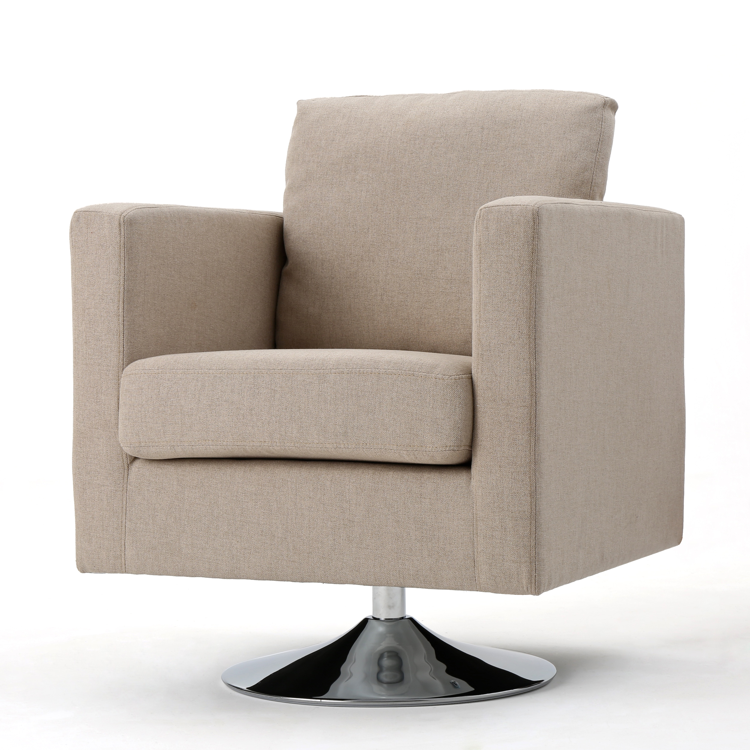 Hahn Modern Fabric Swivel Club Chair Cream And Chrome Walmart Com Walmart Com